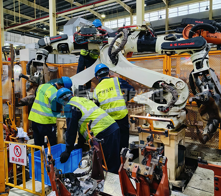 This time, multiple Kawasaki welding robots with models 3BA006L-AC01 were maintained on the rear floor and middle channel production lines of the welding machine department in the automotive grinding and stamping plant BX100N B、BX165L B。